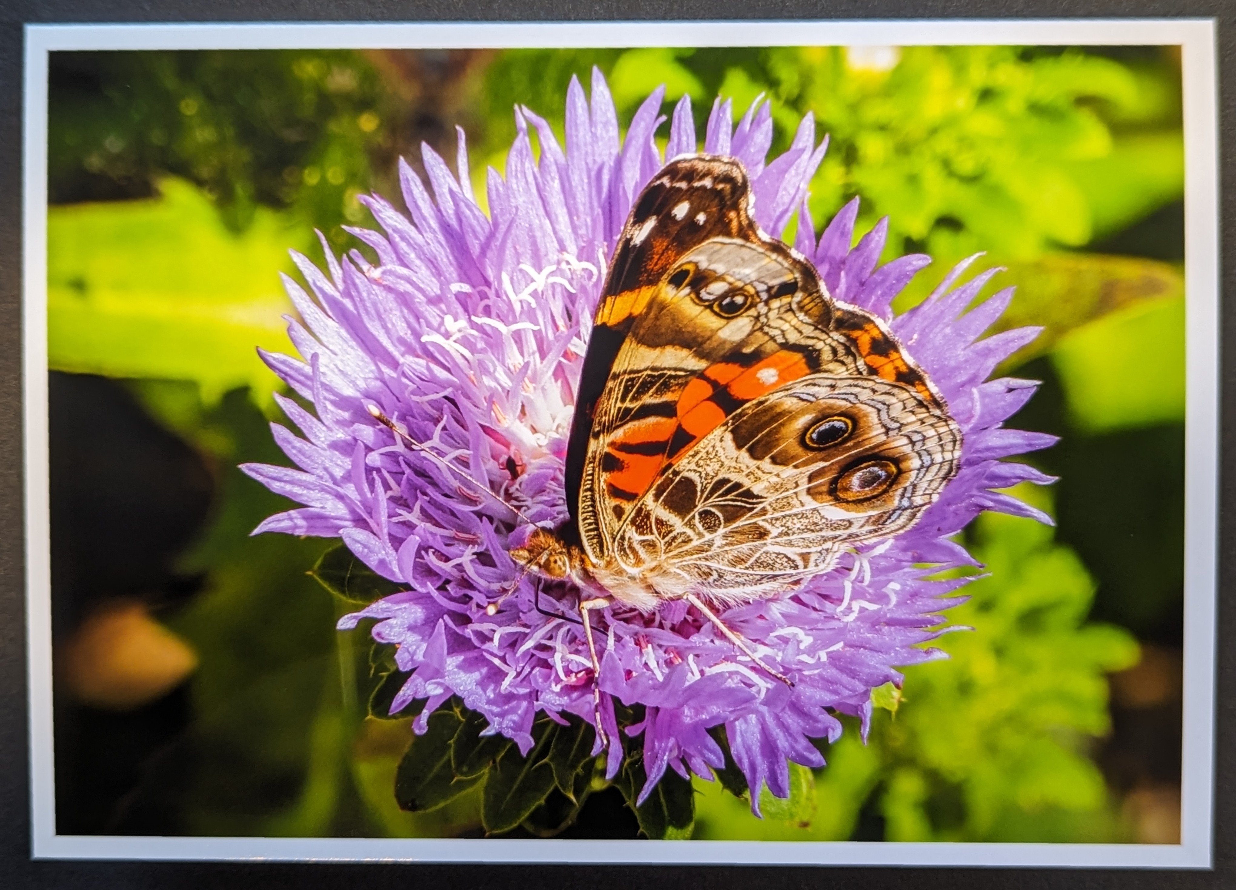 Notecards featuring my bird and butterfly photographs are now being sold at the NC Botanical Garden shop (Chapel Hill) and the Carol Woods Retirement Community gift shop (cash and personal checks only at Carol Woods). My notecards are blank inside and available in 2 sizes: large (5 x 7 inches) and small (4¼ x 5½ inches). Boxes containing a mix of 5 small notecards are also available. Selection varies by location. |